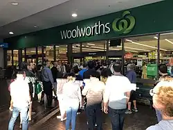 Warteschlangen vor einem Supermarkt (19. März 2020)