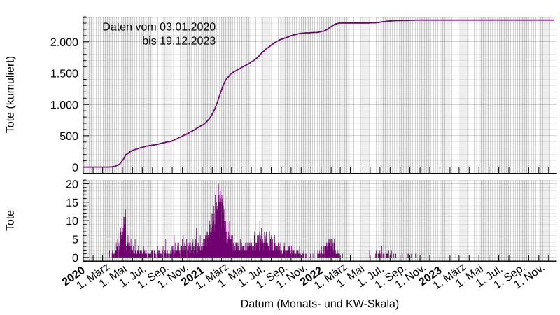 - ↑ a b WHO Coronavirus Disease (COVID-19) Dashboard; oben rechts auf der Seite ist ein Link zum Download der Daten im CSV-Format