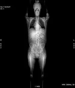 Vor jeder Aufnahme wird grundsätzlich eine Übersichtsaufnahme aufgenommen. Hierbei steht die Röntgenröhre still. Der Patient wird mit Hilfe des verfahrbaren Tisches am Fächerstrahl der Röhre vorbeigefahren. Im Ergebnis erhält man ein Bild, das einer klassischen Röntgenaufnahme sehr ähnlich sieht. Dieses Bild dient jedoch nur der Planung anschließender Aufnahmen.[1]