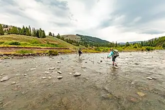 ![]() Backpacker durchqueren den Cache Creek auf dem Lamar River Trail | ||