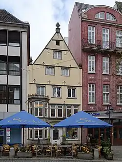 Das Café Stecker in Bremen - Mitte, Knochenhauerstraße 14, wurde als Wohn- und Geschäftshaus 1551/1600 gebaut.