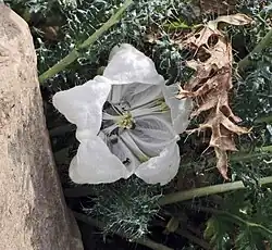 Habitus, Laubblätter und Blüten von Caiophora boliviana