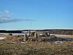 Der Nordost-Südwest orientierte Steinhügel war oval (etwa 19,5 m lang, 13,5 m breit). Die Kammer ist rechteckig. Die erhaltenen Steine sind 0,6 bis 1,5 m hoch. Eine Gruppe von Eintiefungen auf der Innenseite des östlichen Steins aus Sandsteinkonglomerat ist vermutlich natürlichen Ursprungs. Ein zusätzlicher aufrechter Stein, 0,9 m hoch, steht am östlichen Rand des Steinhügels.