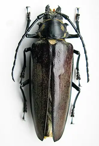 Die Käfer werden 58 bis 108 Millimeter lang.[1] Auffällig sind die großen, zangenähnlichen Mandibeln, die an jene der Hirschkäfer (Lucanidae) erinnern.