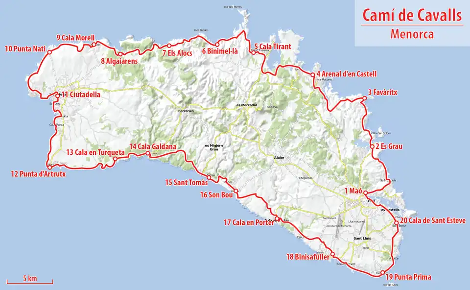 Der Camí de Cavalls nahm vermutlich bereits im 14. Jahrhundert erste Gestalt an und wurde in seinem Ursprung von den „Caballeries“ (Landbesitzer mit feudalem Hintergrund) genutzt, um die Küste rund um die Insel zu erschließen. Erstmals erwähnt wurde der Camí schriftlich im 17. Jahrhundert als ein Pfad, der die Insel Menorca vollständig umrundet. Zwar wurde der Weg bis in das 20. Jahrhundert überwiegend vom Militär mit Pferden zu Verteidigungszwecken genutzt, er stand jedoch auch dem einfachen Volk zur Verfügung. Ab dem 20. Jahrhundert wurden Privatgrundstücke auf einzelne Abschnitte gebaut und der Camí de Cavalls konnte lange Zeit nicht genutzt werden. In den 1980er Jahren begannen Menorciner sich für die Wiederfreigabe des Pferdepfades einzusetzen.