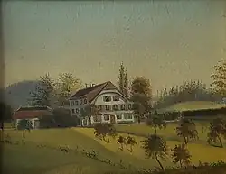 Das ehemalige Landgut Hölziger Ofen, zwischen Sandrain und Mon Repos, an der Stelle der heutigen Adresse Holzikofenweg 1, verdankte seinen Namen einem Verwandlungsmöbel, einem Schreibmöbel in Kaminform.[1][2] Das Verwandlungsmöbel hatte an seinem ursprünglichen Standort ein funktionierendes Gegenstück, einen Kamin mit gekacheltem Aufsatz.[3] Der Offizier Niklaus Wyttenbach (1698–1768) kam 1742 in den Besitz der Campagne und dürfte damit Auftraggeber des 1743 datierten Möbels und Kamins sein.