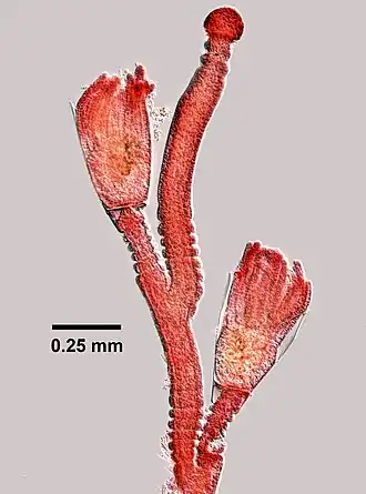 Obelia sp., Mikroskopaufnahme einer Polypenkolonie | ||||||||||