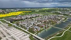 Die von 2001 bis 2005 gebaute Anlage verfügt über 150.100 m² oberirdischer Bruttogeschossfläche (insgesamt 979.259 m³ umbauter Raum) für Büro- und Forschungsnutzung mit Kantine und Restaurants, Läden, Kindergarten und eine Betriebsfeuerwehr. Östlich und westlich um die zentrale Grünachse gliedern sich je sechs Gebäude, sogenannte Halbmodule, die über einen in Nord-Süd-Richtung verlaufenden zentralen „Anger“ erschlossen werden. Ende 2005 wurden die Gebäude von der Infineon Technologies AG bezogen. Intel Mobile Communications (IMC), der ehemalige Infineon Bereich Wireless Solutions sind ebenfalls auf dem Gelände zu finden. Die südlich angrenzenden Vorhalteflächen werden seit 2017 bebaut.[1]