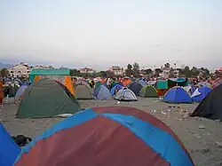 Camping (auch Kampieren, von lat. campus „Feld“) bezeichnet eine Form des Tourismus. Die Urlauber übernachten in diesem Fall in Zelten, Wohnwagen oder Wohnmobilen, in Dachzelten oder ausgebauten Vans. Wird in Zelten gecampt, so spricht man auch von Zelten.