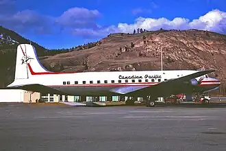 Anfang der 1940er-Jahre hatte die Canadian Pacific Railway nacheinander zehn kleinere regionale Fluggesellschaften aufgekauft und diese am 30. Januar 1942 unter dem Namen United Air Service zusammengeschlossen.[1][2] Ab dem 24. März 1942 verwendete das Unternehmen die Firmenbezeichnung Canadian Pacific Air Lines, die am 16. Mai 1942 zum offiziellen Namen der Fluggesellschaft wurde.[2][3] Anfänglich besaß die Gesellschaft kein zusammenhängendes Liniennetz. Passagiere und Fracht wurden auf getrennten von Edmonton, Flin Flon, Montreal, Regina, Roberval, Senneterre, Winnipeg und Vancouver ausgehenden Routen in den Norden Kanadas befördert.[4] Im Jahr 1942 strebte das Unternehmen einen vollständigen Zusammenschluss mit der staatlichen Fluggesellschaft Trans-Canada Air Lines an, was aber von der kanadischen Regierung untersagt wurde.[5] Stattdessen führte Canadian Pacific ab 1943 neben eigenen Flügen auch Zubringerdienste für Trans-Canada Air Lines durch. Die im Jahr 1944 beantragte Genehmigung zur Aufnahme transkontinentaler Linienflüge wurde vom kanadischen Verkehrsministerium abgelehnt, weil der Verkehr auf den lukrativen Ost-West-Verbindungen ausschließlich der staatlichen Trans-Canada Air Lines vorbehalten war. Aufgrund dieser Reglementierung konnte Canadian Pacific Air Lines die vorhandenen Lücken in ihrem nationalen Streckennetz erst ab 1958 langsam schließen. Nach dem Zweiten Weltkrieg verlegte die Gesellschaft ihren Firmensitz von Montreal nach Vancouver und änderte die Schreibweise ihres Namens in Canadian Pacific Airlines um. Zeitgleich wurde die Flotte mit gebraucht erworbenen Douglas DC-3 weitgehend standardisiert.[1]