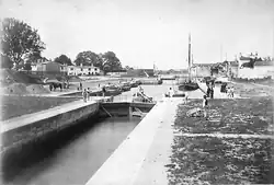 Schleuse Marans, vorn das Fundament einer ehemaligen Drehbrücke -