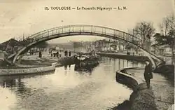 Seit 1810 führt der Canal du Midi durch Carcassonne. Bei den Verlegearbeiten entstand auch eine Kanalbrücke über den verlegten Fresquel, dessen Wasser – wie vorher schon – die Speisung des Kanals unterstützt. Zwei verlassene Schleusen (fünf Stufen) wurden durch drei neue Schleusen (vier Stufen) ersetzt. In und am Rand der Stadt entstand je ein Kanalhafen. Das von Garipuy, jun. stammende Projekt wurde 1786 angenommen.[36] Die Bauarbeiten wurden wegen der Französischen Revolution erst 1802 begonnen.[39]