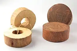 In der Regel treten zwei Männergruppen (seltener Frauen) gegeneinander an. Bei den größeren Festen laufen meist die verschiedenen Moieties gegeneinander, die meisten Läufe werden jedoch von einer älteren und einer jüngeren Altersgruppe ausgetragen. Dabei werden Holzklötze, die bis zu 130 kg wiegen können, auf den Schultern über längere Strecken ins Ziel transportiert. Der Klotz wird dabei von Schulter zu Schulter weitergegeben. Alle Läufer sind bunt geschmückt, von diversem Kopfschmuck bis hin zu aufwendig gestalteten Gürteln. Man unterscheidet die Klotzläufe nach der Streckenlänge, der Art des Laufes und der Größe und dem Gewicht der Klötze.[36] Die Klötze werden schon nach der morgendlichen Ratsversammlung aus der Buriti-Palme geschlagen, um dann durch ein Klotzrennen ins Dorf zurückzukehren.[37]