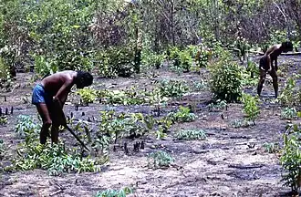 Schon vor dem ersten Kontakt mit Einwanderern aus Europa hatten die Canela ein gut ausgebautes Feldbausystem. Traditionell angebaut wird unter anderen Mais, Süßkartoffeln, Yams, Maniok und Urucu.[19][1] Die meisten Äcker befinden sich in den Galeriewäldern, die durch Brandrodung an den Flussufern angelegt werden. Durch die notwendige jährliche Abholzung nimmt die Entfernung der Felder zum Dorf stetig zu, sodass Felder etwa alle zehn Jahre verlegt müssen. Der Ertrag hängt vom Ausmaß der Rodung sowie der Anzahl der Pflanzen ab, aber auch der spezielle Umgang mit den Pflanzungen beeinflussen die Erträge. Da der Feldbau ursprünglich nicht die Hauptquelle der Nahrungsversorgung darstellte, vernachlässigen die Canela häufig ihre Felder.