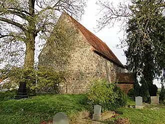 - Die Dorfkirche ist ein gotischer Backsteinbau aus der zweiten Hälfte des 13. Jahrhunderts. Der freistehende Glockenstuhl mit Glocke, eine Mauer und vier eisernen Grabkreuze sind ebenfalls Baudenkmale.