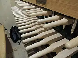 Bei modernen Instrumenten kann der Impuls auf den Klöppel auch elektrisch (Elektromagnet) oder pneumatisch (Luftdruck) übertragen werden. Voraussetzung ist, dass auch hier die Klöppel dynamisch (laut und leise) gespielt werden können. Der Spieltisch ist meist mit Stocktasten versehen, manchmal auch mit einer Klaviatur.[8]