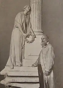 Karl Echtermeyer vor dem Modell seiner letzten Arbeit, dem Severinschen Grabdenkmal für den Braunschweiger Zentralfriedhof
