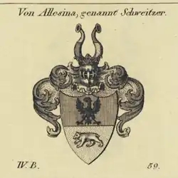Am 18. Oktober/25. November 1816 wurden sein Vater und seine Onkel in den königlich bayerischen Adelsstand als „von Allesina, gen. Schweitzer“ erhoben. Carl Franz war Jurist in Frankfurt.