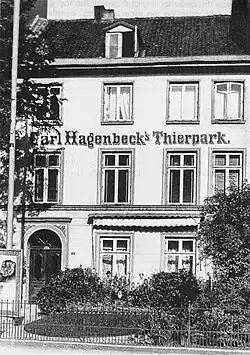 1890 führte er die zahme Dressur von Wildtieren ein und plante einen offenen Tierpark ohne Gitter, auf den er 1896 auch ein Patent erwarb. Im selben Jahr trat er mit seinem Thierzirkus auf der Berliner Gewerbeausstellung auf, wo er Eisbären, Seehunde und verschiedene Vögel vor einem 60 Meter tiefen und 25 Meter breiten Eismeerpanorama präsentierte.[17] Der Zirkus wurde 1905 nach dem Aufkauf durch einen amerikanischen Zirkus zum Circus Hagenbeck-Wallace.