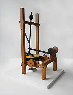 - Zwei Maschinen zum Reiben von feinen Wasser-, Oel-, und Schmelzfarben mittels Menschen-, Tier-, Dampf- und Wasserkraft[31]