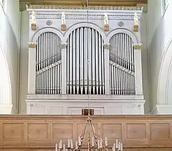 | 1865 | Kladow | Dorfkirche | I/P | 8 | Prospekt nach Entwurf von Karl Friedrich Schinkel, 1953 und 1976 restauriert von Karl Schuke, 1976 Register Mixtur 3fach ergänzt[20][21] | |