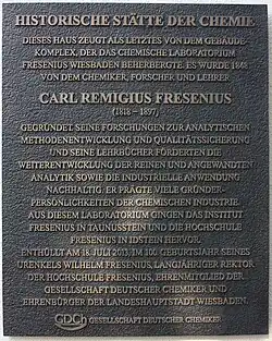 Die Gesellschaft Deutscher Chemiker zeichnete 2013 das von Carl Remigius Fresenius im Jahr 1848 gegründete chemische Laboratorium Fresenius als „Historische Stätte der Chemie“ aus und würdigte damit die Anfänge der Analytischen Chemie.[9]