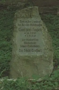 Der Landkreis Mühlhausen und die Stadt Treffurt ließen 1937 anlässlich des einhundertsten Todestages Carl von Hagens einen Gedenkstein für ihn in Treffurt setzen.