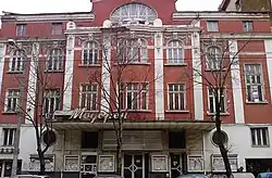 Carlo Vaccaro erkannte auch das Bedürfnis der Menschen nach Unterhaltung. Er kaufte ein altes Gebäude am Boulevard Maria-Luisa 26 (бул. „Мария-Луиза” № 26) in Sofia und beauftragte den Architekten Dimo Nitschew dieses in ein Kino umzubauen. Nitschew entwarf dafür ein Gebäude im Stil der Secession. Die Leinwand war mit einer Dimension von 3 × 4 m eine der größten ihrer Zeit. Am 23. Dezember 1908 eröffnete die "Modernes Theater" (Модерен Театър) genannte Spielstätte ihre Pforten.[4] Als ältestes Kino Bulgariens und eines der ältesten Europas ist es als Kulturdenkmal von lokaler Bedeutung gelistet. Seit 2003 steht das Gebäude leer.[14] Auch in Plowdiw gab er ein Lichtspieltheater in Auftrag. Mit der Planung wurde der Sofioter Architekt Aleksandăr Stawrew (Александър Ставрев) betraut, der ein Bauwerk im Stil des Neobarocks mit Anklängen an die Secession schuf.[15] Die erste Vorführung fand am 8. April 1909 statt. Das Gebäude in der ul. Knjas Aleksander I 24 (ул. „Княз Александър“ I № 24) ist bis heute erhalten und wird derzeit als Einkaufszentrum genutzt. 1909 organisierte Carlos Sohn Edmondo mit mobilem Equipment erste Filmvorführungen in Skopje.[7]