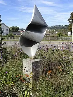 - 1971/1972: 4 konkave und 4 konvexe Raumecken. Standort: Turn- und Sportanlage Buechholz, Zollikon. Chromnickelstahl, 250 hoch