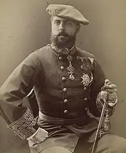 Infant Carlos (VII.) María de Borbón y Österreich-Este, vollständiger Name Carlos María de los Dolores Juan Isidro José Francisco Quirín Antonio Miguel Gabriel Rafael de Borbón y Austria-Este (* 30. März 1848 in Laibach; † 18. Juli 1909 in Varese) war Herzog von Madrid. er war ab 1868 carlistischer Prätendent auf den spanischen Thron und Anführer im Dritten Carlistenkrieges.