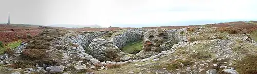 Im Zentrum besteht die Anlage aus einer großen Kammer von etwa 11,3 m Durchmesser, die aus Trockenmauerwerk gebildet wird und von einem Kraggewölbe bedeckt war. Neben mehreren unterhalb der Plattform eingefügten Steinkisten wurde an deren Außenkante ein Eingangsgrab eingebaut. Die Kammer enthielt eine in den Fels geschnittene T-förmige Grube, die als symbolischer Eintritt in die Unterwelt angesehen wird.