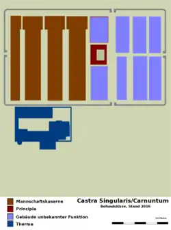 - ↑ Christian Gugl, Mario Wallner, Wolfgang Neubauer, Michael Doneus, Klaus Löcker: Die militärischen Anlagen in Carnuntum. In: Franziska Beutler u. a. (Hrsg.): Der Adler Roms. Carnuntum und die Armee der Caesaren. Nünnerich-Asmus, Mainz 2017, ISBN 978-3-945751-86-2, S. 76–85, hier S. 82.