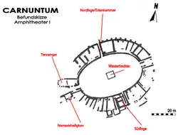 - ↑ Franziska Beutler: Die zwei Amphitheater von Carnuntum und deren Datierung. In: Werner Eck, Bence Fehér, Péter Kovács: Studia Epigraphica in memoriam Géza Alföldy (= Antiquitas. Reihe 1, Band 61). Rudolf Habelt, Bonn 2013, ISBN 978-3-7749-3866-3, S. 19–37.
