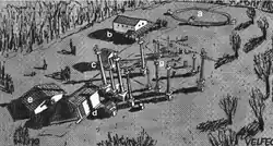 | Größe | A) 195 × 178 Meter = 3,4 ha B–D) 207 × 177 Meter = 3,6 ha |
