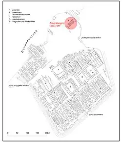 - ↑ Werner Jobst 2006, S. 86–87 und 234; Christian Gugl 2012, S. 413; Christian Gugl, Michael Doneus 2014, S. 67–72; Laszlo Borhy 2014, S. 34; August Obermayr 1967, S. 132; Christian Gugl, Mario Wallner, Wolfgang Neubauer, Michael Doneus, Klaus Löcker: Die militärischen Anlagen in Carnuntum. In: Franziska Beutler u. a. (Hrsg.): Der Adler Roms. Carnuntum und die Armee der Caesaren. Nünnerich-Asmus, Mainz 2017, ISBN 978-3-945751-86-2, S. 76–85, hier S. 82.