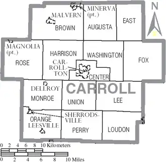 - ↑ Carroll County, Ohio (Seite nicht mehr abrufbar, festgestellt im Oktober 2022. Suche in Webarchiven) Info: Der Link wurde automatisch als defekt markiert. Bitte prüfe den Link gemäß Anleitung und entferne dann diesen Hinweis., Datenblatt mit den Ergebnissen der Volkszählung im Jahre 2000 bei factfinder.census.gov.