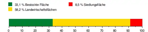 Es besteht zu 33,1 % aus bestockter Fläche, zu 58,2 % aus Landwirtschaftsfläche und zu 8,5 % aus Siedlungsfläche.