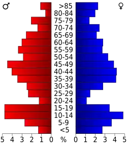 Auf das gesamte County bezogen setzte sich die Bevölkerung zusammen aus 26,50 % Einwohnern unter 18 Jahren, 4,10 % zwischen 18 und 24 Jahren, 24,90 % zwischen 25 und 44 Jahren, 26,50 % zwischen 45 und 64 Jahren und 17,90 % waren 65 Jahre alt oder darüber. Das Durchschnittsalter betrug 42 Jahre. Auf 100 weibliche Personen kamen 94,80 männliche Personen, auf 100 Frauen im Alter ab 18 Jahren kamen statistisch 96,70 Männer.