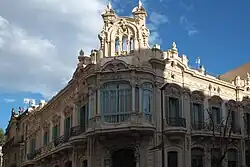 Das Haus, das die Industrie- und Handelskammer beherbergt, wurde im Stil des Eklektizismus errichtet. Das Gebäude liegt im Stadtviertel, das um 1900 als Erweiterung der Altstadt entstand und in Katalonien als Eixample bezeichnet wird (siehe auch Eixample in Barcelona). Das Eckgebäude besitzt auf seinem Dach einen weithin sichtbaren Aufbau in Form eines Dreifachfensters mit Bekrönungen. Das Vestibül ist mit einem Deckengemälde geschmückt, auf dem ein Füllhorn und eine Fackel dargestellt sind, die Symbole des Reichtums und des Fortschritts.