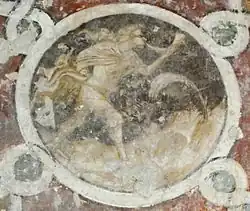 - ↑ Das Fragment eines Freskos mit dem heraldischen Zeichen des Adlers findet sich im Gebäudeteil aus dem 14. Jahrhundert der Residenz der D’Estes, die heute Sitz der Stadtverwaltung von Ferrara ist.