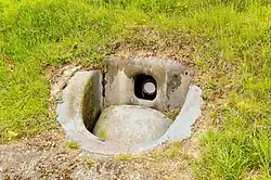 - Die Decke war durch eine Eisenplatte in den Abmessungen von 1,2 × 5,12 m unterfüttert, auf ihr lag eine Steinschicht, eine Lage Ton, dann Lehm dann Mutterboden aufgetragen. Die Decke war ausgelegt, den Einschlag einer Granate vom Kaliber 95 mm zu absorbieren.