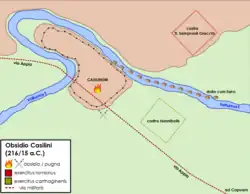 Während des Zweiten Punischen Krieges wurde Casilinum 217 v. Chr. zuerst von Quintus Fabius Maximus Verrucosus besetzt.[1] Hannibal eroberte die Stadt, nachdem die Truppen von Praeneste und Perusia sie im Winter 216/5 v. Chr. heldenhaft gegen die Karthager verteidigt hatten.[2] 214 v. Chr. eroberten die Römer Casilinum zurück;[3] danach richteten sie es als Operationsbasis zum Kampf gegen das rebellische Capua ein. Damals verlor Casilinum seine Unabhängigkeit und wurde eine praefectura.