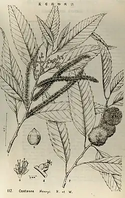 - ↑ a b c d e Chengjiu Huang, Yongtian Zhang, Bruce Bartholomew: Castanea henryi. In: Flora of China. Volume 4, 1999, S. 316 (online).