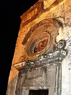 Zwei der drei noch erhaltenen Türme rahmen den Eingang ein, der aus einem breiten Portal aus dem 17. Jahrhundert mit einem Wappen der Familie De Martino besteht. Über dem Portal war ursprünglich eine Loggia mit drei Fenstern angebracht, wie man an den Spuren im Putz erkennt.
