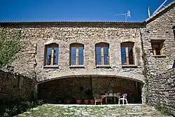 Das befestigte Wohnhaus mit Resten einer mittelalterlichen Burganlage steht an der Südostseite einer Erhebung, die von zwei Seiten durch einen steilen Hang geschützt wird. Sie besteht aus dem Herrenhaus, der Kirche und Nebengebäuden. Im Innenhof des Hauses ist ein 7,70 Meter breiter Bogen zu sehen. Dort ist auch das Wappen der Besitzerfamilie Mur angebracht.