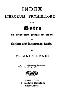 Index Librorum Prohibitorum. Being Notes Bio- Icono- graphical and Critical, on Curious and Uncommon Books ist eine Bibliografie erotischer Literatur von Henry Spencer Ashbee, die er unter dem Pseudonym Pisanus Fraxi 1877 als Privatdruck veröffentlichte. Der vollständige Titel lautet: Index Librorum Prohibitorum: Being Notes Bio- Icono- graphical and Critical, on Curious and Uncommon Books. Das Werk war das erste von insgesamt drei Werken, die auch unter dem Sammeltitel Index Librorum Prohibitorum zusammengefasst werden. Der Titel lehnt sich ironisch an den Index librorum prohibitorum an, den Kanon der von der katholischen Kirche verbotenen Bücher. Die beiden anderen Bibliographien waren Centuria Librorum Absconditorum („Hundertschaft der verborgenen Bücher“, 1879) und Catena Librorum Tacendorum („Kette der zu verschweigenden Bücher“, 1885).