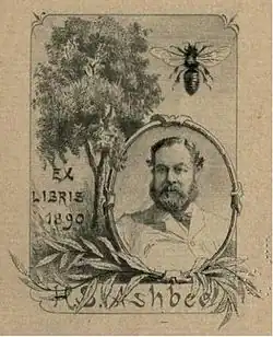 Exlibris von Henry Spencer Ashbee mit Porträt, Esche und Biene