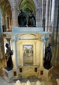 Caterina de’ Medici starb auf Schloss Blois und wurde in der Basilika Saint-Denis bei Paris bestattet. Bei der Plünderung der Königsgräber während der Französischen Revolution wurde ihr Grab am 18. Oktober 1793 geöffnet und ihre Überreste in einem Massengrab außerhalb der Kirche beerdigt. Während der bourbonischen Restauration nach 1815 wurden die in den beiden Gruben außerhalb der Kathedrale beerdigten Gebeine und sterblichen Überreste erneut geborgen und, da sie einzelnen Individuen nicht zuzuordnen waren, in einem gemeinsamen Ossarium in einer Krypta der Basilika Saint-Denis beigesetzt.