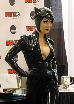 Bei ihrem ersten Auftritt 1940 (noch unter dem Namen „The Cat“) trug Catwoman eine Katzenmaske über dem Gesicht und ein normales Kleid. Später trug sie ein eng anliegendes Ganzkörperkostüm, dessen Maske Katzenohren hatte – diese Art Kleidungsstück wird nach ihr „Catsuit“ genannt.