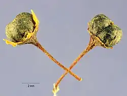 Es werden kleine, schwarze, drüsig-klebrige, etwa rundliche, dreisamige, -lappige, bis 4 Millimeter große Kapselfrüchte mit beständigem Blütenbecher gebildet.
